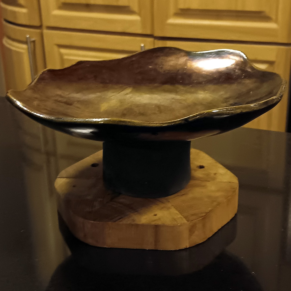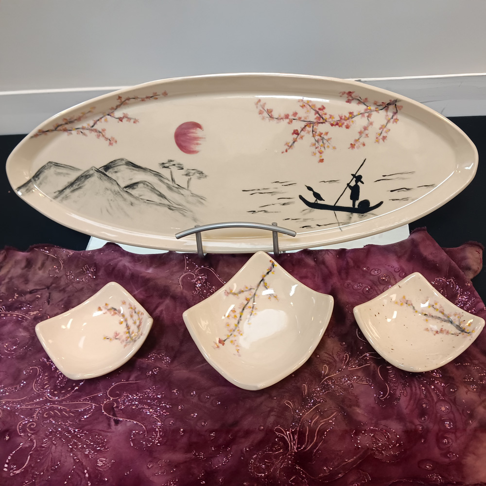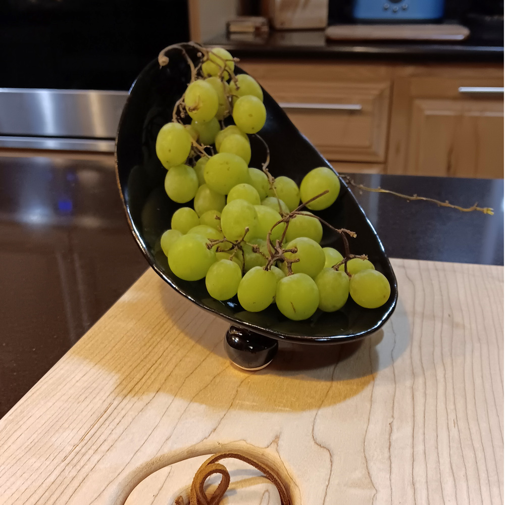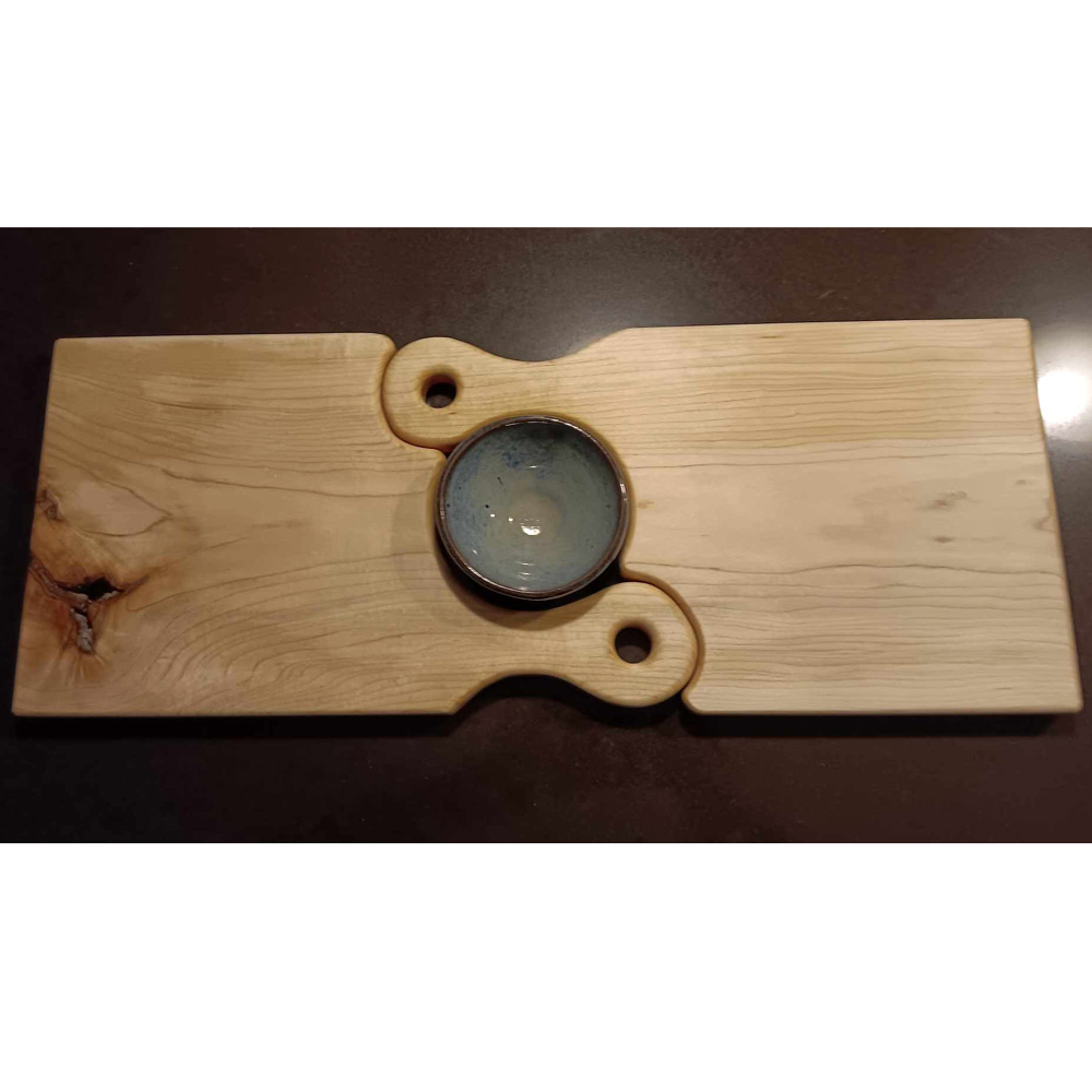 I retired from CNL in January 2021 and I have enough time now to still be involved with theatre and choral group as well as lots of visual arts. After finishing up a few home renovation projects, I found myself wanting to do something creative with clay. I saw the beautiful pots local potters were creating and I really wanted to learn how to do that. In January 2023, I joined the Deep River Potter’s Guild. They provided me with lessons and many opportunities to take workshops. Now I’m having a such a fun time creating some very interesting pieces. This past year, my husband and I started making charcuterie boards together, as gifts for friends and family. I loved how my bowls complemented these beautiful wooden charcuterie boards. Some of the boards were designed with a space for a pottery bowl. My favourite so far is my octopus bowl in the centre of an American hard maple charcuterie board.