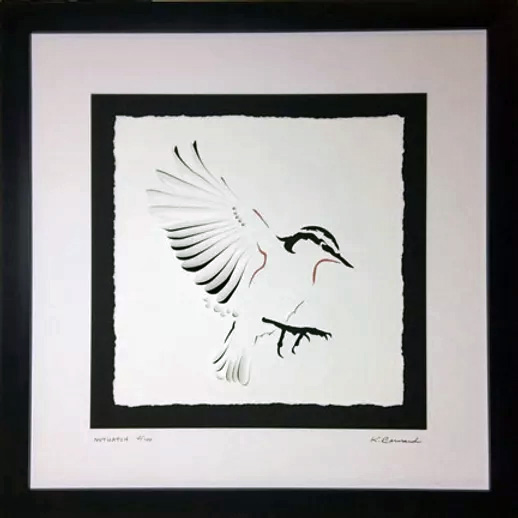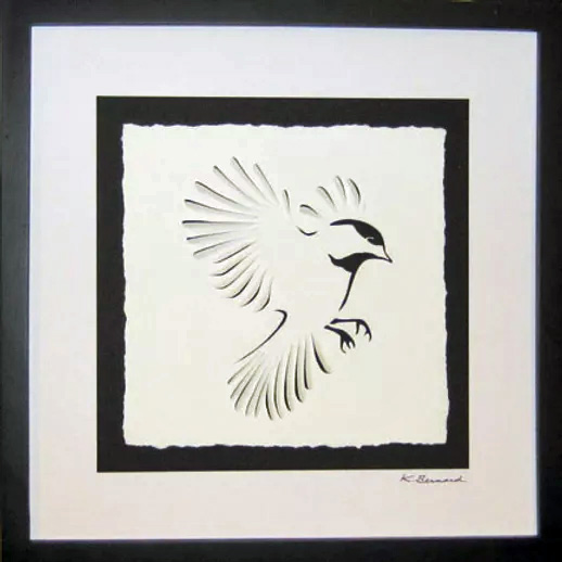 Paper cutting started off with a series of birds in flight that involve hand cut images that are folded and layered to give the piece motion and life. I use watercolour paper that I hand cut. The areas that I want to give motion to are hand moulded or curved and the rest I used positive and negative space to produce the image of the bird.