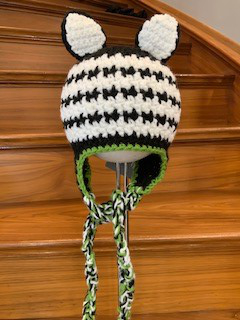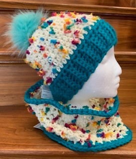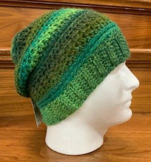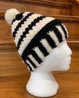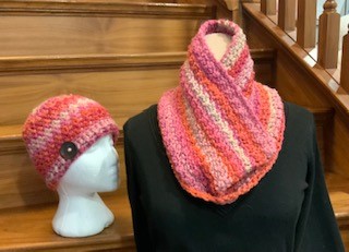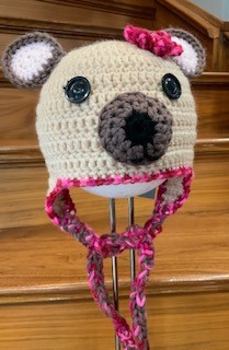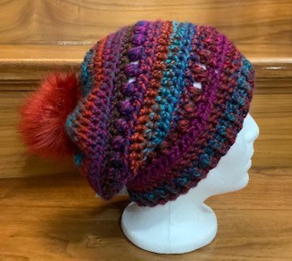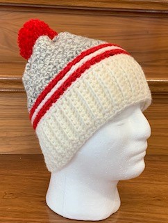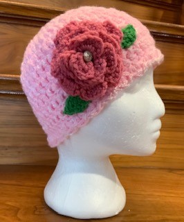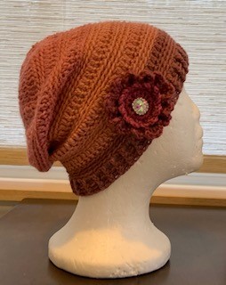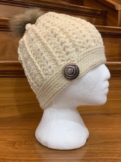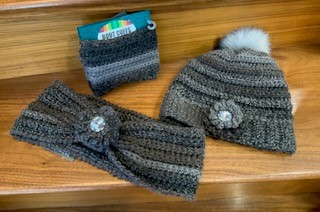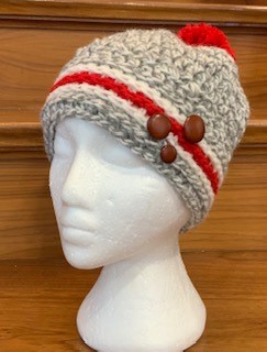 When I retired in the Fall of 2009 and moved to Deep River, I joined the local Deep River and Area Jabez Blanket Ministry. The Ministry’s goal is to produce beautiful hand crocheted or knitted blankets that are added to a “Back Pack of Hope” and sent to orphanages around the world. I became heavily involved with this group and subsequently became the local coordinator. One of my tasks is to encourage donations of yarn from the local communities surrounding Deep River. Some of the yarn donated is not always suitable for blankets, so rather than dispose of it, I decided to try my hand at making head warmers and neck warmers. I began attending craft shows and my hats became very popular. I started out of course using patterns from designers which I found for free on the internet. In the last few years, I honed my skills and felt comfortable in tweaking designs to make them more my own. Since I have such a beautiful variety of yarn… different fibres, colours, weights and textures, I can use these to create a lot of one of a kind hats, headbands and neck warmers. I love to play with textured crochet stitches to see if they will work in “the round” for a hat. To make my product even more unique, I will often use clip on earrings, broaches or other types of embellishments, along with buttons to decorate an appliqué or the brim of a hat or neck warmer.